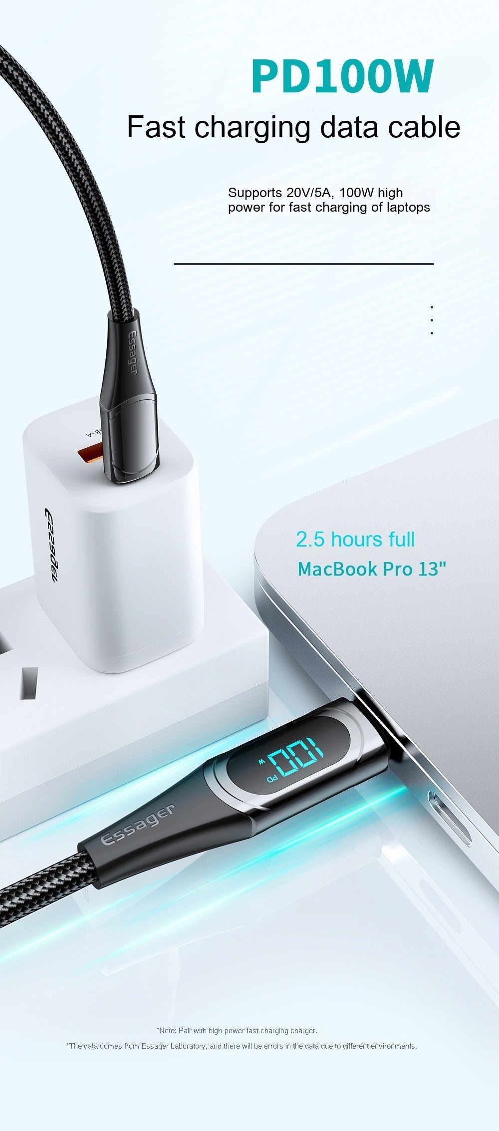 Product features: Built in E-marker chip, digital display design, zinc alloy shell, low-temperature fast charging,