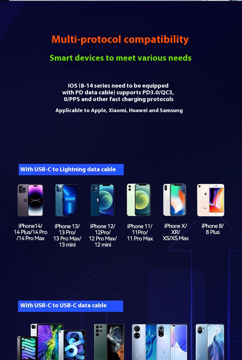 Fast Charge Dual PD USB Type C Smart Charger 120W Output