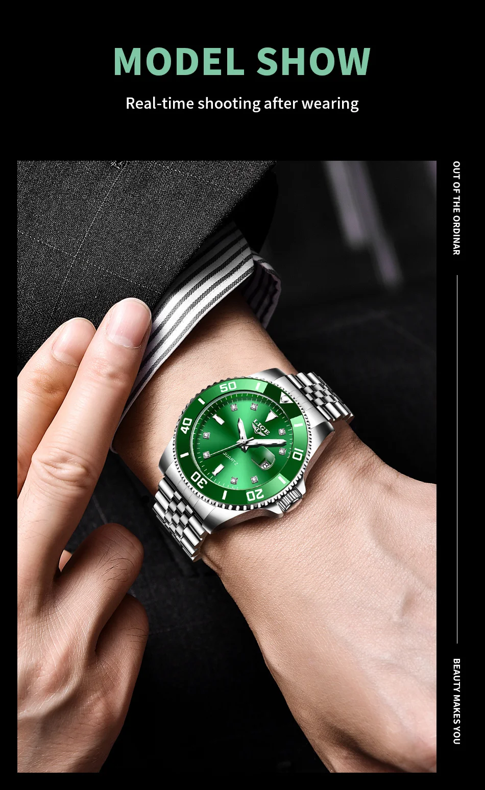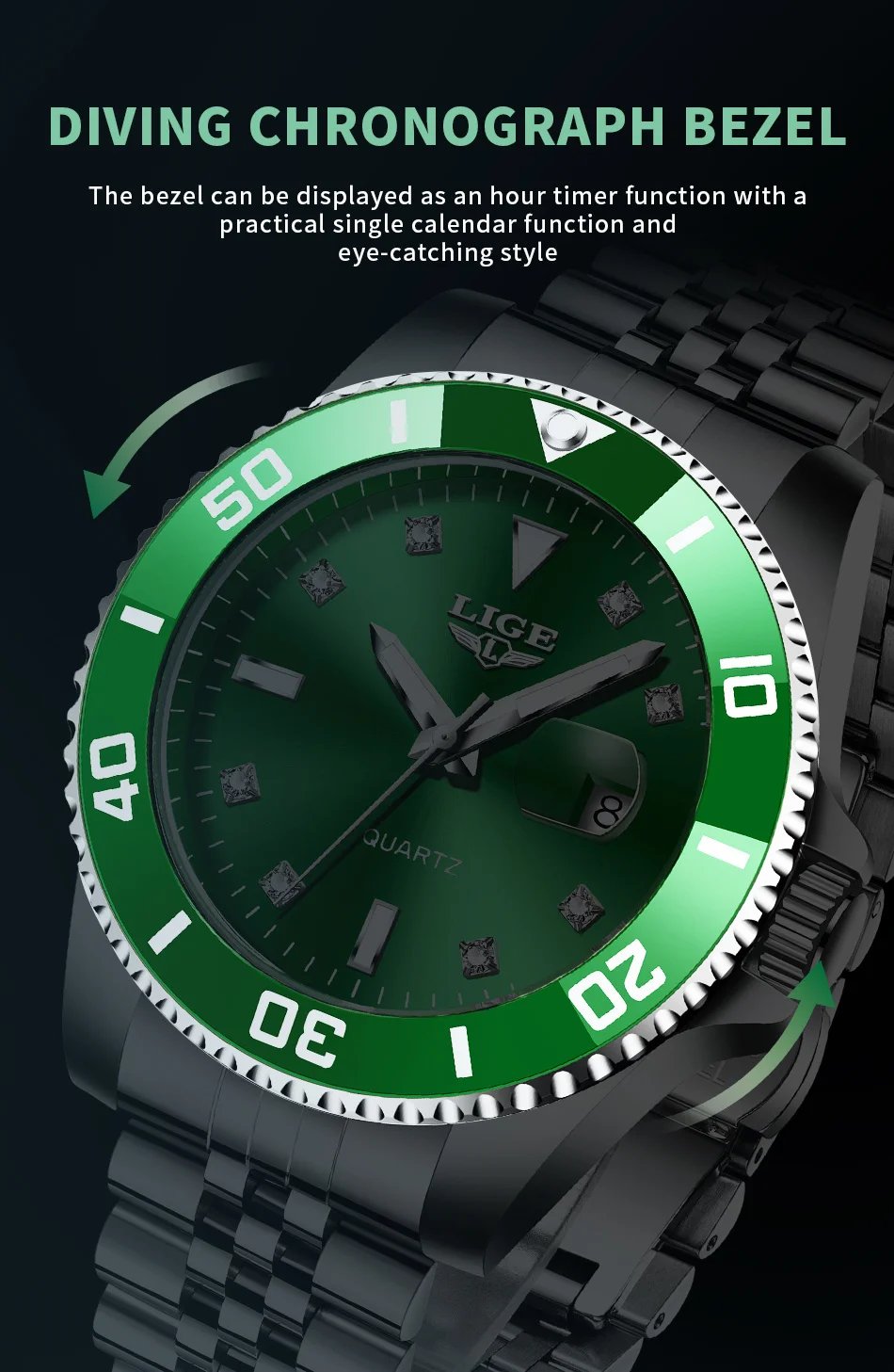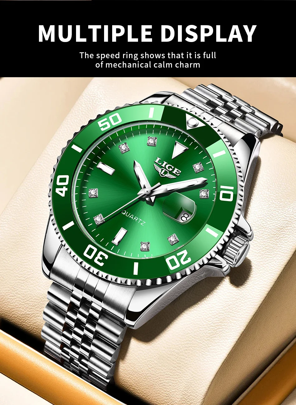Luxury Watch Men Stainless Steel Diamond Dial- Includes Case