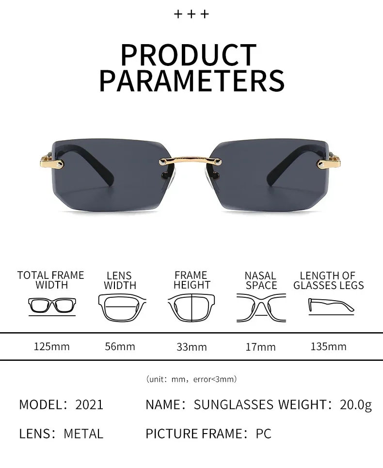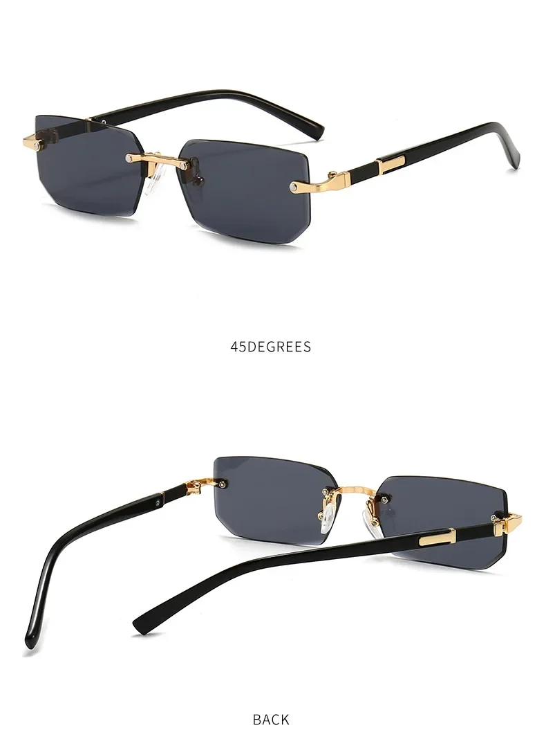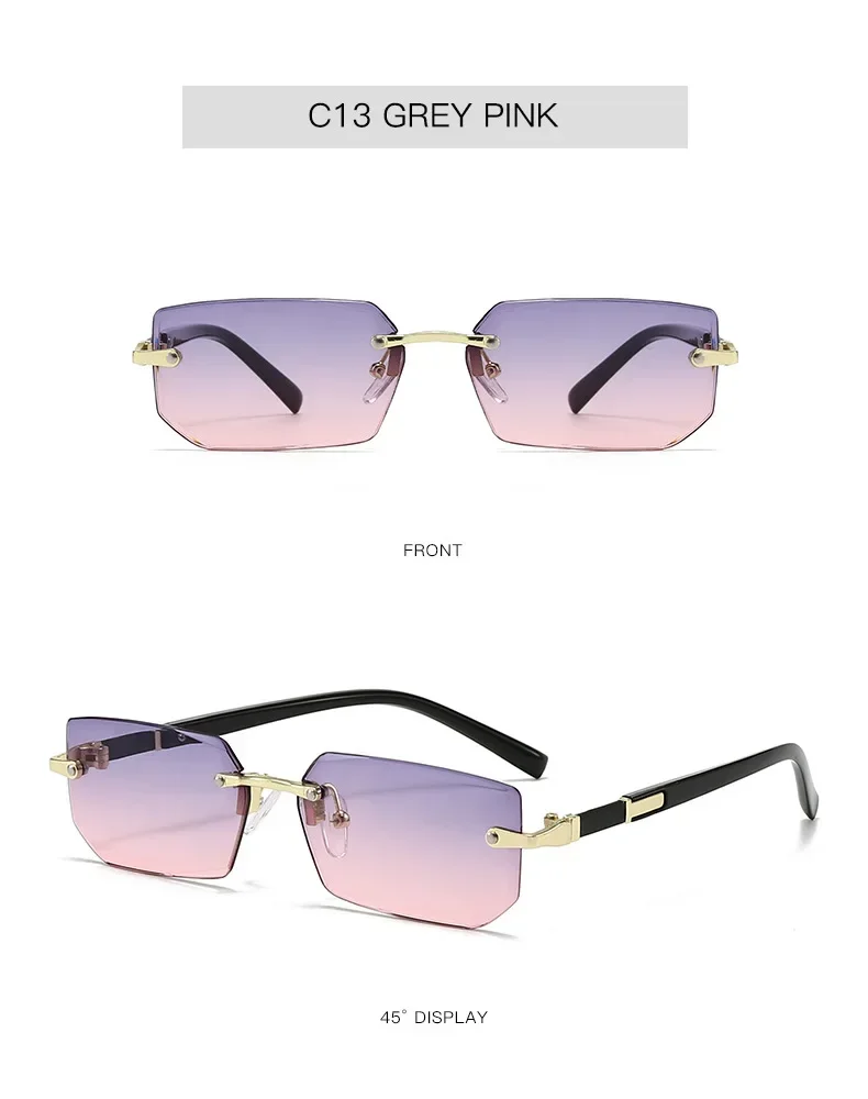 Men Women Rimless Rectangle Sunglasses - Pink Lens Cut Edge - Free Shipping