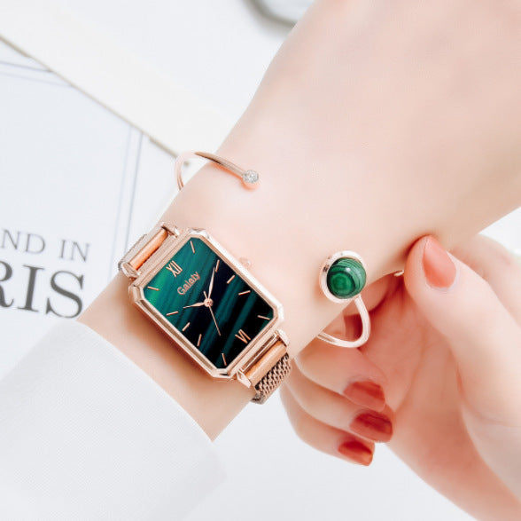Retro Temperament Square Womens Watch Malachite Green