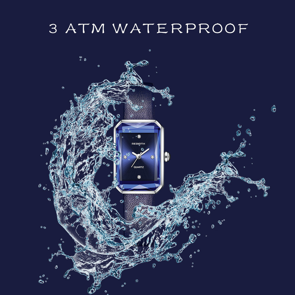 Rectangular Dial Quartz Watch Alloy Case Blue Rose Gold
